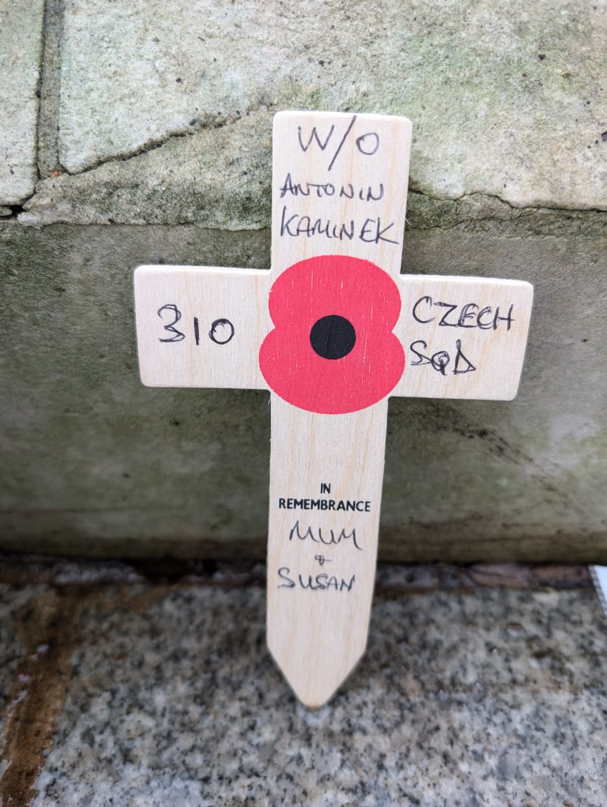Noting a cross placed on the memorial on our 9th November Remembrance Sunday service FONFA board member Richard Grycz himself a Czech talked to the person who had placed the cross. His name is Bernard Kuropka and he kindly later emailed FONFA the following information.