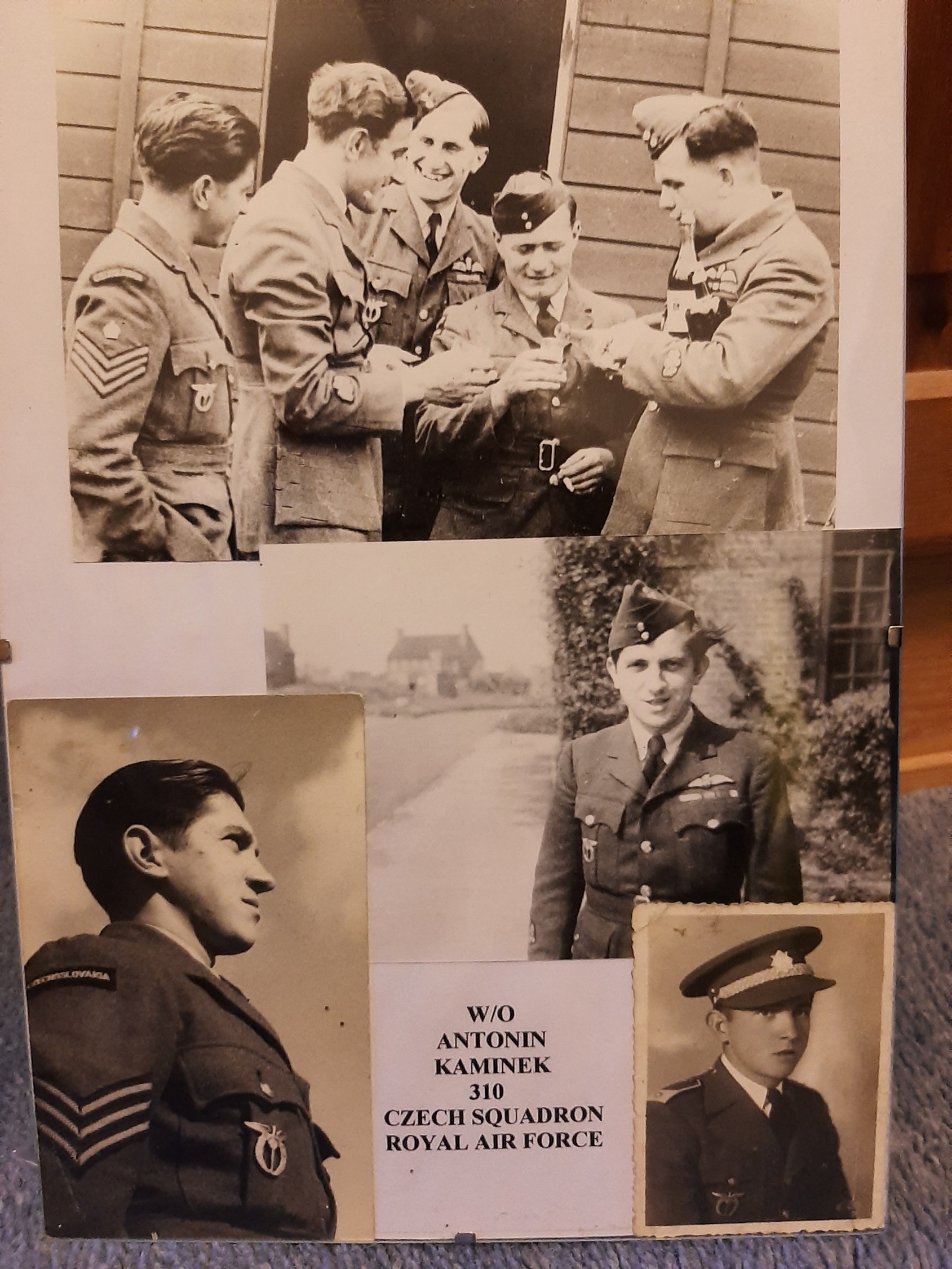 Czech Pilots in RAF service – part II . you will see W/0 Antonin (Tonda) Kaminek (a sergeant Pilot at the time) around 5mins 12secs into the film. He has dark hair, a rounded/almond face, of small stature, and can be seen covering his eyes from the glare sat in a wicker chair whilst being spoken to by the 310 CO (Sqdn Leader Dolezal).